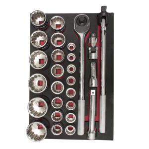 1. Juego de dados cortos y accesorios cuadro de 3/4" métricos 27 piezas, CH302-C Urrea