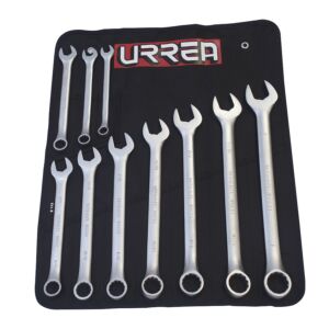 2. Juego de llaves combinadas satinadas en pulgadas, 12 puntas, 10 piezas en estuche Urrea