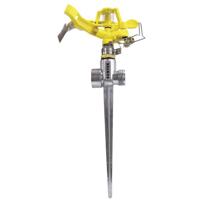 Descripción / Paq c/6 Aspersor metálico regulable por pulsación 3/4" GHT 2 vías Surtek