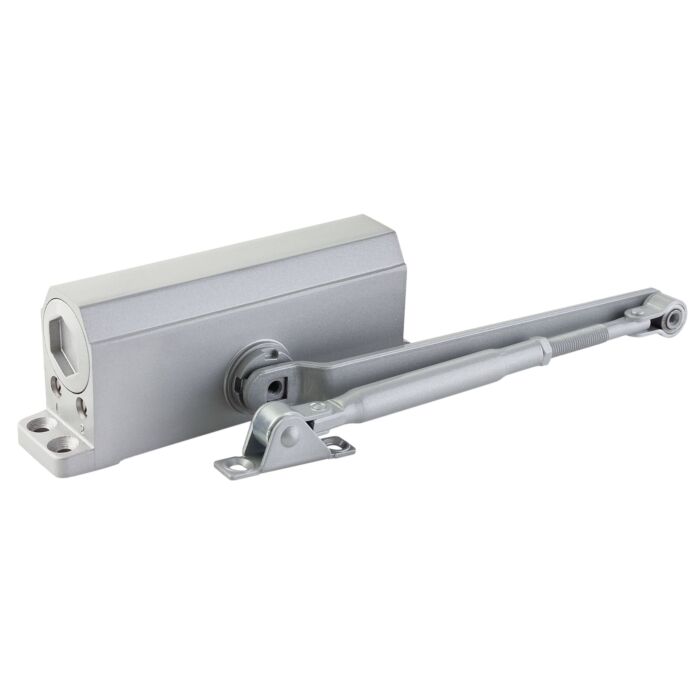 -Cierrapuertas hidráulico de uso continuo con función hold-open. Cuerpo de aluminio. Para puertas de hasta 45 kg.
