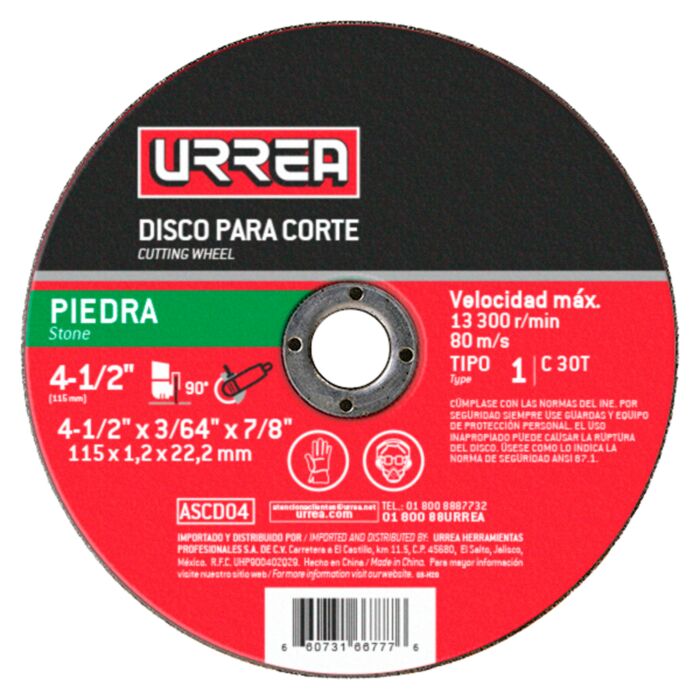 Descripción / Paq c/10 Disco abrasivo tipo 1 para piedra 4-1/2" x 3/64" Urrea