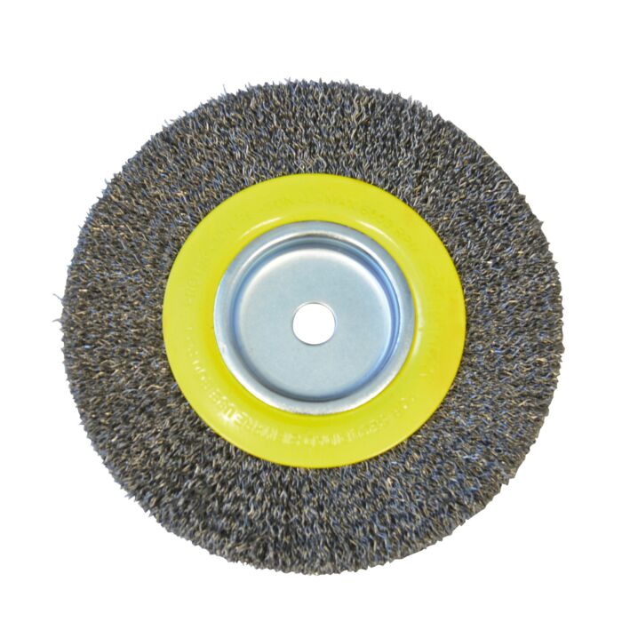 Descripción / Carda circular ondulada alambre delgado para esmeril 6" x 1-1/8" eje 1/2" Surtek