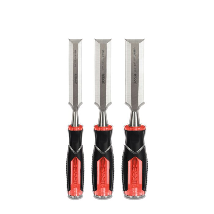 Descripción / Juego de formones para madera con mango bimaterial 1/4", 1/2" y 3/4", 3 piezas Urrea