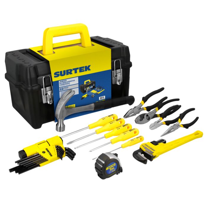 Descripción / Juego combinado de herramienta 22 piezas, con caja plástica Surtek